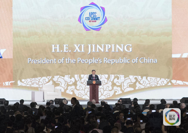 11月10日,國家主席習(xí)近平應(yīng)邀出席在越南峴港舉行的亞太經(jīng)合組織工商領(lǐng)導(dǎo)人峰會(huì)并發(fā)表題為《抓住世界經(jīng)濟(jì)轉(zhuǎn)型機(jī)遇 謀求亞太更大發(fā)展》的主旨演講。新華社記者王曄攝