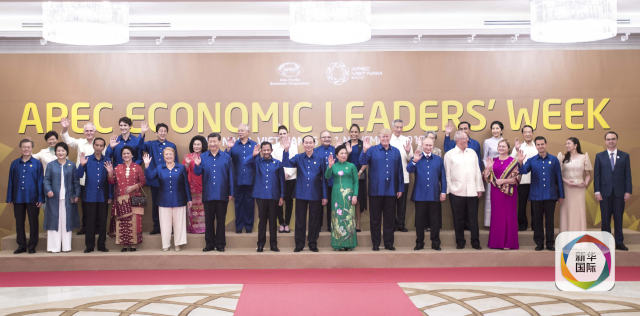 11月11日,亞太經(jīng)合組織第二十五次領(lǐng)導(dǎo)人非正式會(huì)議在越南峴港舉行。國家主席習(xí)近平出席并發(fā)表題為《攜手譜寫亞太合作共贏新篇章》的重要講話。這是會(huì)議期間,國家主席習(xí)近平同其他亞太經(jīng)合組織成員經(jīng)濟(jì)體領(lǐng)導(dǎo)人、代表合影。新華社記者李濤攝
