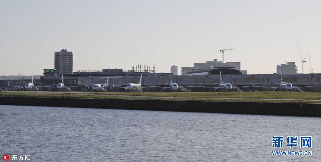當地時間2018年2月12日,英國倫敦,倫敦城市機場附近泰晤士河道內發現一枚二戰遺留炸彈,警方封鎖現場。機場被迫關閉,航班取消。(圖片來源:東方IC)
