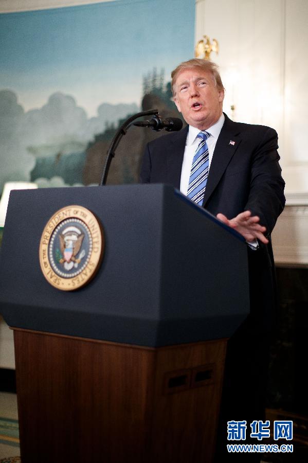 ??? 2月15日,美國總統特朗普在華盛頓白宮就佛羅里達州高中槍擊案發表演講。當日,特朗普稱他計劃前往佛羅里達州帕克蘭市槍擊案現場。佛羅里達州帕克蘭市一所高中14日發生本州歷史上最嚴重校園槍擊案,造成17人死亡。新華社發(沈霆攝)?