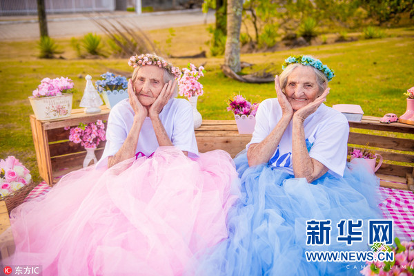 2017年5月15日,巴西攝影師Camila Lima為一對(duì)迎來(lái)100歲生日的雙胞胎姐妹,拍攝了一組充滿甜美少女心的寫真。