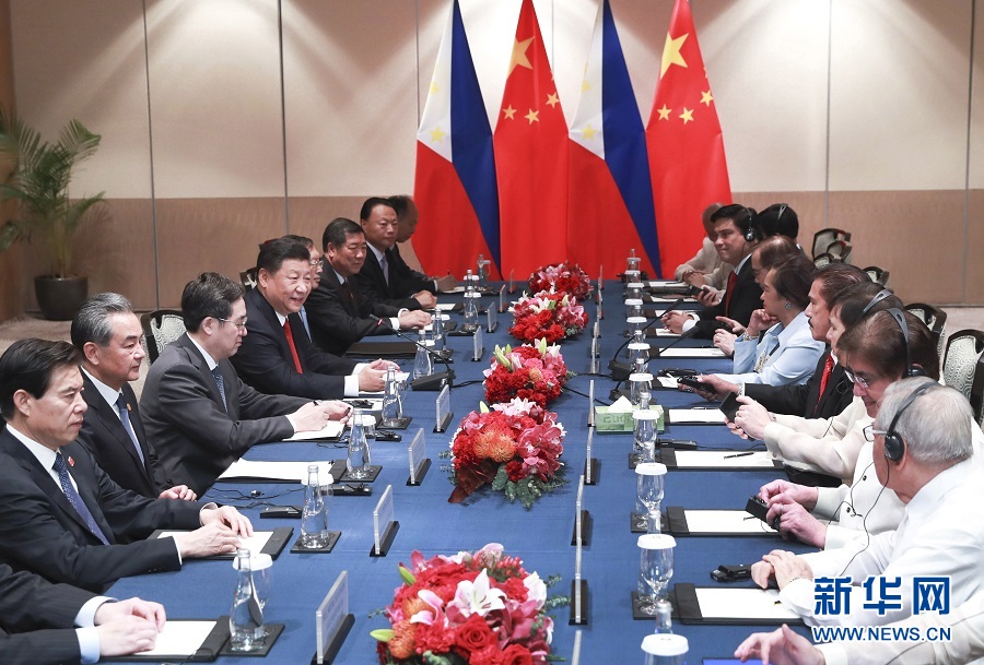 11月21日,國(guó)家主席習(xí)近平在馬尼拉會(huì)見(jiàn)菲律賓眾議長(zhǎng)阿羅約和參議長(zhǎng)索托。 新華社記者 龐興雷 攝