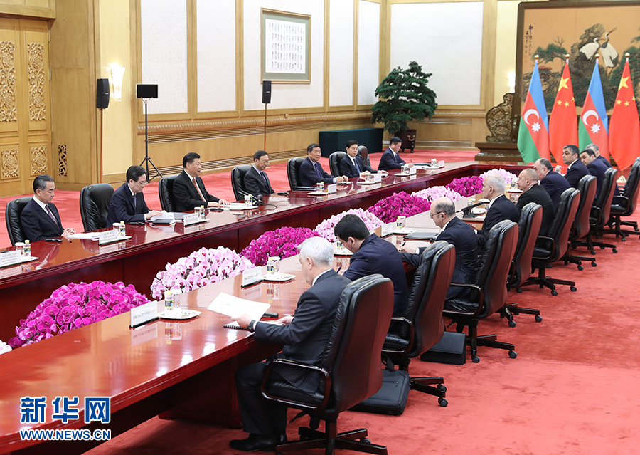 4月24日,國家主席習近平在北京人民大會堂會見阿塞拜疆總統(tǒng)阿利耶夫。 新華社記者 王曄 攝