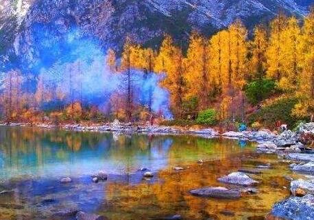 亞丁:紅杉深秋擁雪峰