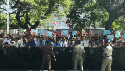 習主席的車隊駛離機場前往市區沿途,眾多當地學生和群眾簇擁在街道兩旁,揮舞中印兩國國旗,手舉習主席和莫迪總理照片,歡呼“中印友好”,表達對習主席的熱烈歡迎。