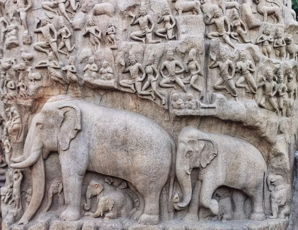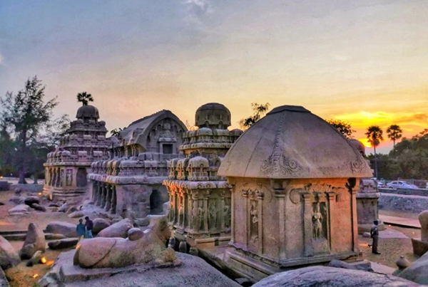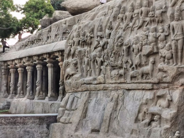 馬哈巴利普拉姆古寺廟建于公元7至8世紀,由阿周那石雕、五戰車神廟、海岸神廟等古跡組成。