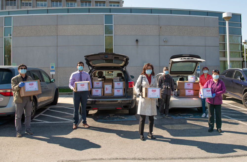 2020年4月6日,在美國馬里蘭州貝塞斯達,“華人支援醫院”的成員準備將一批醫療物資捐獻給當地一家醫院。(新華社發)