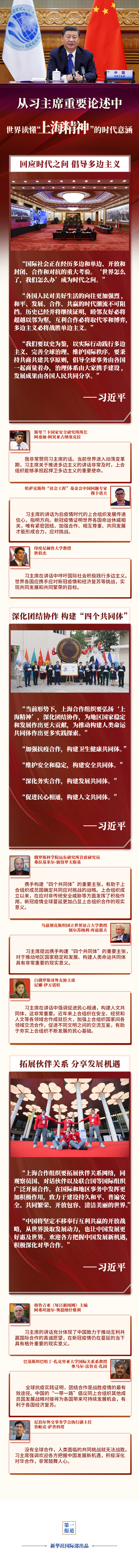 習主席的講話引發國際社會積極反響。多國專家學者表示,習主席的重要論述為上合組織的發展指明方向,豐富“上海精神”的時代意涵,為推動構建更加緊密的命運共同體注入強大動力——