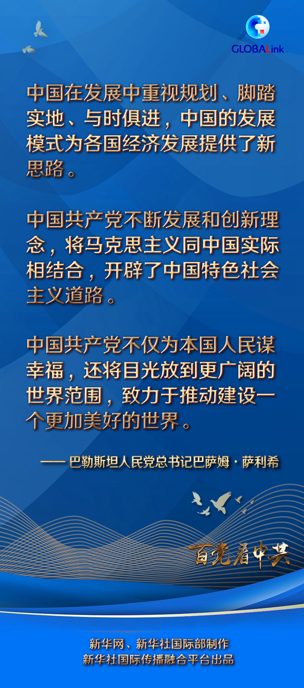 基于多次訪華和對中國持續的觀察,薩利希對中國和中國共產黨有著直觀而深刻的認識。他說:“中國共產黨不斷發展和創新理念,將馬克思主義同中國實際相結合,開辟了中國特色社會主義道路。”