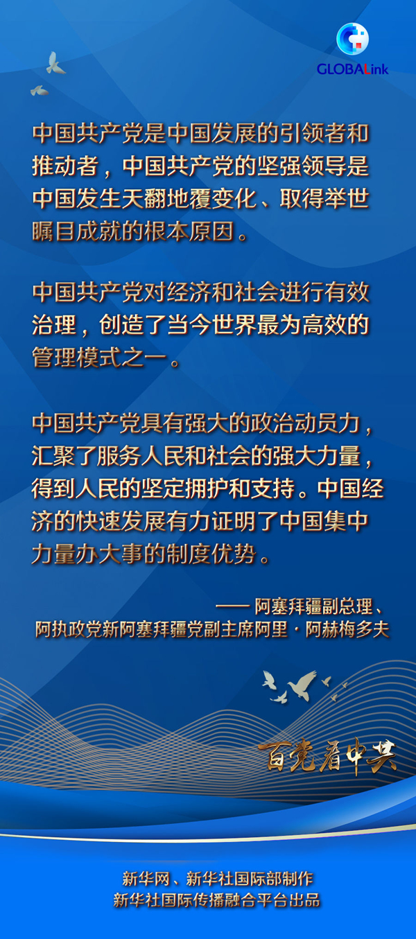 新華社第比利斯7月12日電 阿塞拜疆副總理、阿執(zhí)政黨新阿塞拜疆黨副主席阿里·阿赫梅多夫日前在第比利斯接受新華社記者專訪時說,中國共產(chǎn)黨是中國發(fā)展的引領(lǐng)者和推動者,中國共產(chǎn)黨的堅強(qiáng)領(lǐng)導(dǎo)是中國發(fā)生天翻地覆變化、取得舉世矚目成就的根本原因。