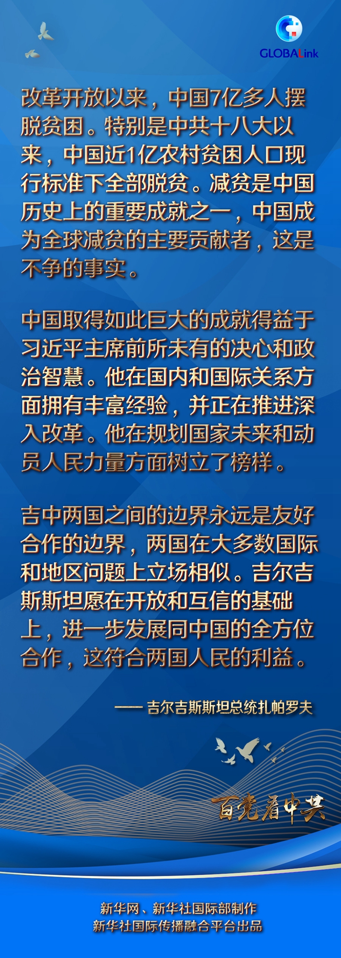 新華社比什凱克7月19日電 “我要給中國共產(chǎn)黨帶領(lǐng)中國在建設(shè)和改革中取得的偉大成就打最高分。”吉爾吉斯斯坦總統(tǒng)扎帕羅夫日前在吉首都比什凱克接受新華社記者專訪時如是說。